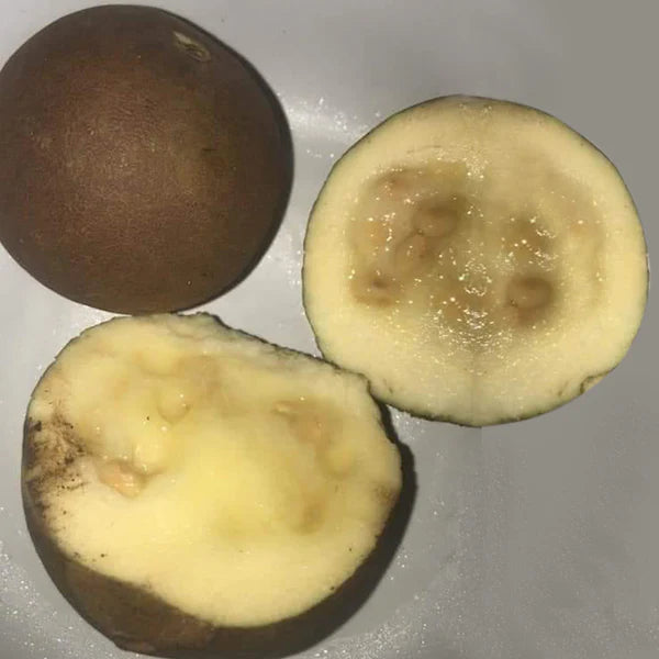 The Brown Feijoa Acreana is a rare tropical jewel from the lush Amazon rainforest, especially from the state of Acre in Brazil. This small to medium-sized shrub or tree grows to around 2–3 meters, making it a perfect fit for both compact gardens and larger landscapes. Its elongated, oval-shaped fruits, cloaked in a brownish, slightly textured skin, hide a luscious, translucent greenish pulp that bursts with flavor. Each bite offers a delightful balance of sweetness and tartness, blending hints of pineapple, guava, and a refreshing citrus tang.