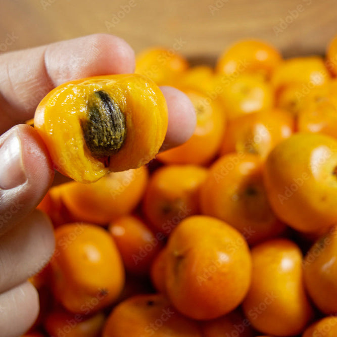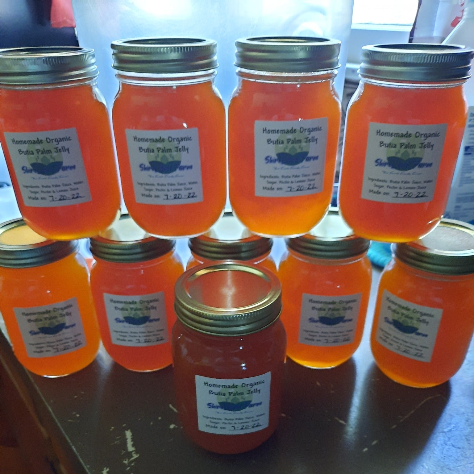 The fruits of the Butia Palm are golden-orange, round to oval, and carry a distinct tropical fragrance. Their juicy pulp has a sweet-tart pineapple-like flavor with hints of apricot and coconut, making them a natural favorite for fresh consumption. Beyond eating raw, the fruits are popularly transformed into jams, jellies, wines, juices, desserts, and even fermented beverages. In many traditional households, the jelly made from these fruits is a seasonal delicacy.