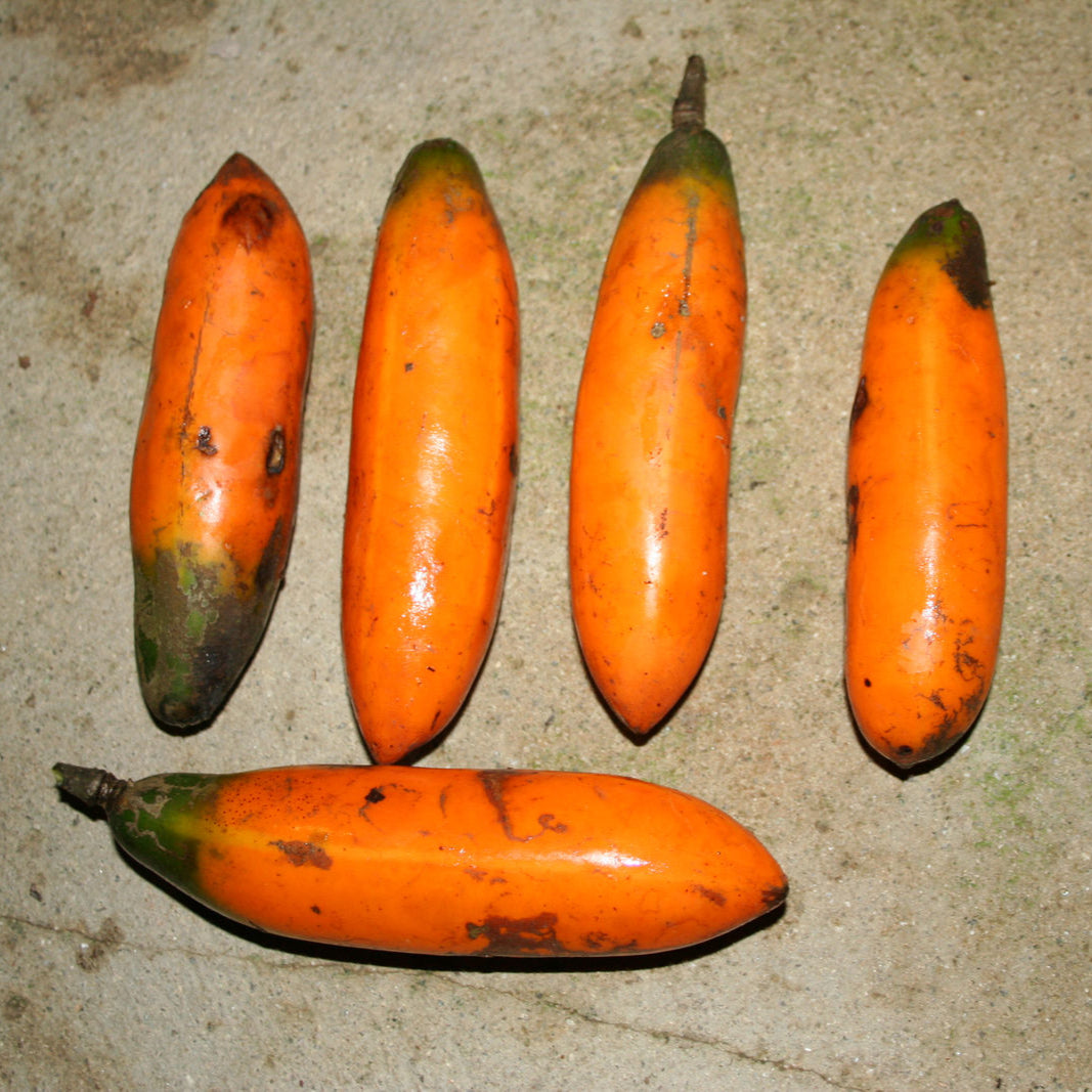 The female trees bear oblong, angled fruits that turn a yellowish-orange hue upon ripening. Their papaya-like structure adds to their charm, though the taste and texture are distinctly different, making Chamburo a special addition to exotic fruit collections.
