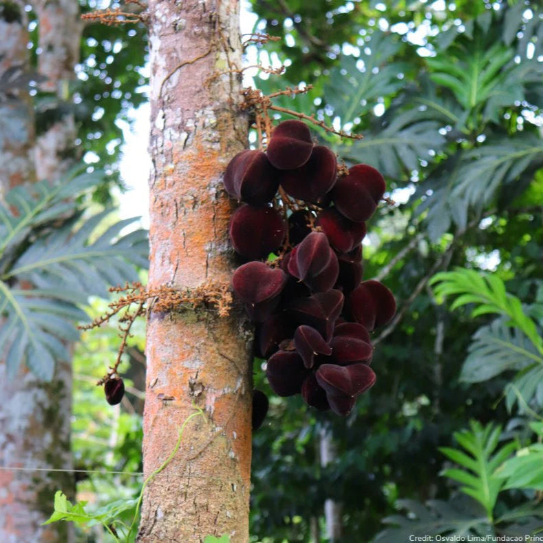 Appearance: The fruits grow directly on the trunk and main branches (a phenomenon known as cauliflory, also seen in cacao and jaboticaba). This adds dramatic beauty when the tree is laden with clusters of violet, velvety fruits.