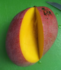 The Fruit Punch mango is a standout modern hybrid developed in Florida, celebrated for its exceptionally bold and complex flavor profile. True to its name, this variety delivers an intense tropical explosion that expertly blends notes of pineapple, citrus, berry, and melon. The fruit is medium to large with an attractive oval shape, featuring a golden-yellow skin that becomes adorned with a vibrant red blush as it ripens. Inside, the deep orange flesh is entirely fiberless and incredibly juicy, making it a premier choice for those who enjoy eating mangoes fresh or using them to add a "fruit punch" kick to blended drinks and smoothies.