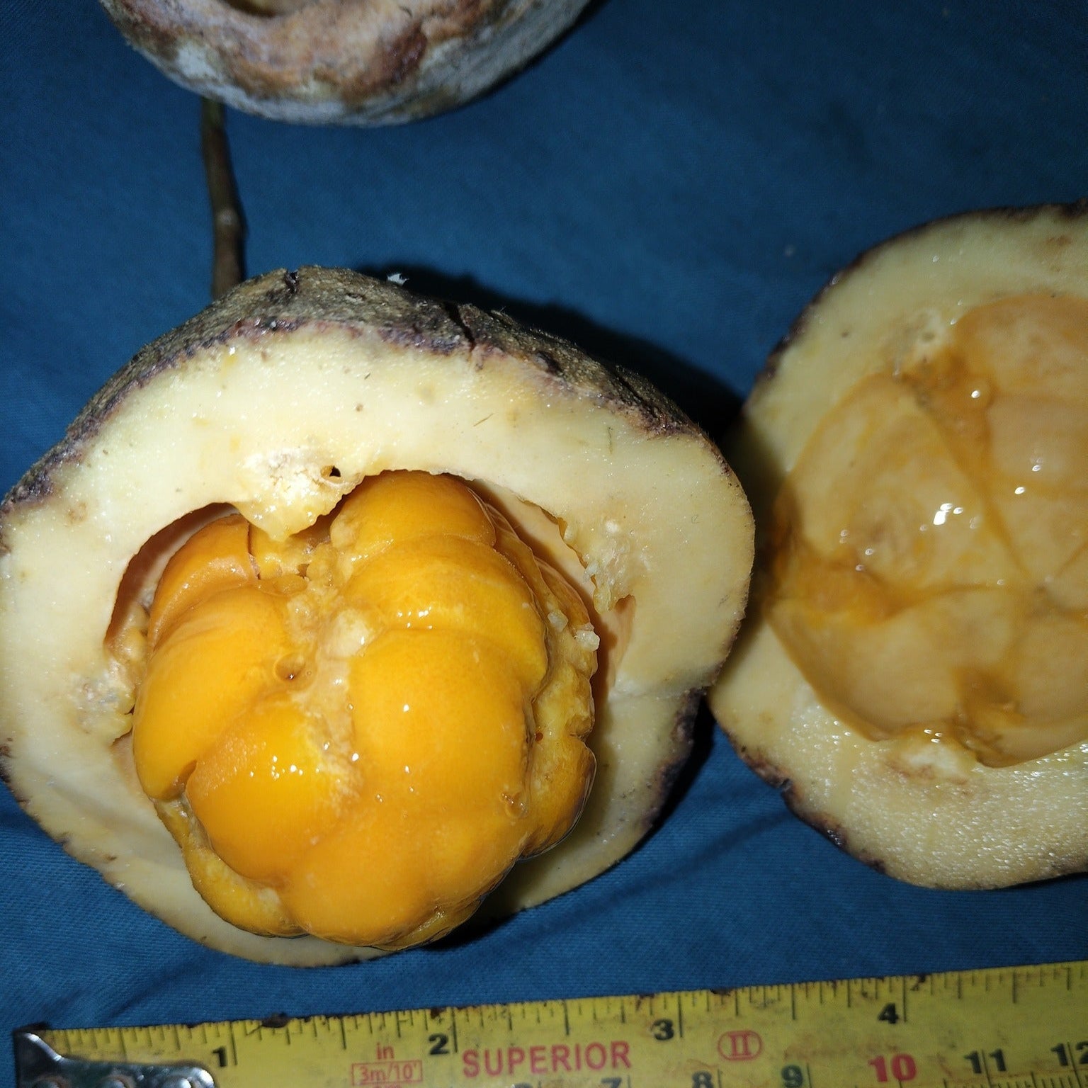 The pulp is tender and enjoyable when eaten fresh, often straight from the tree.