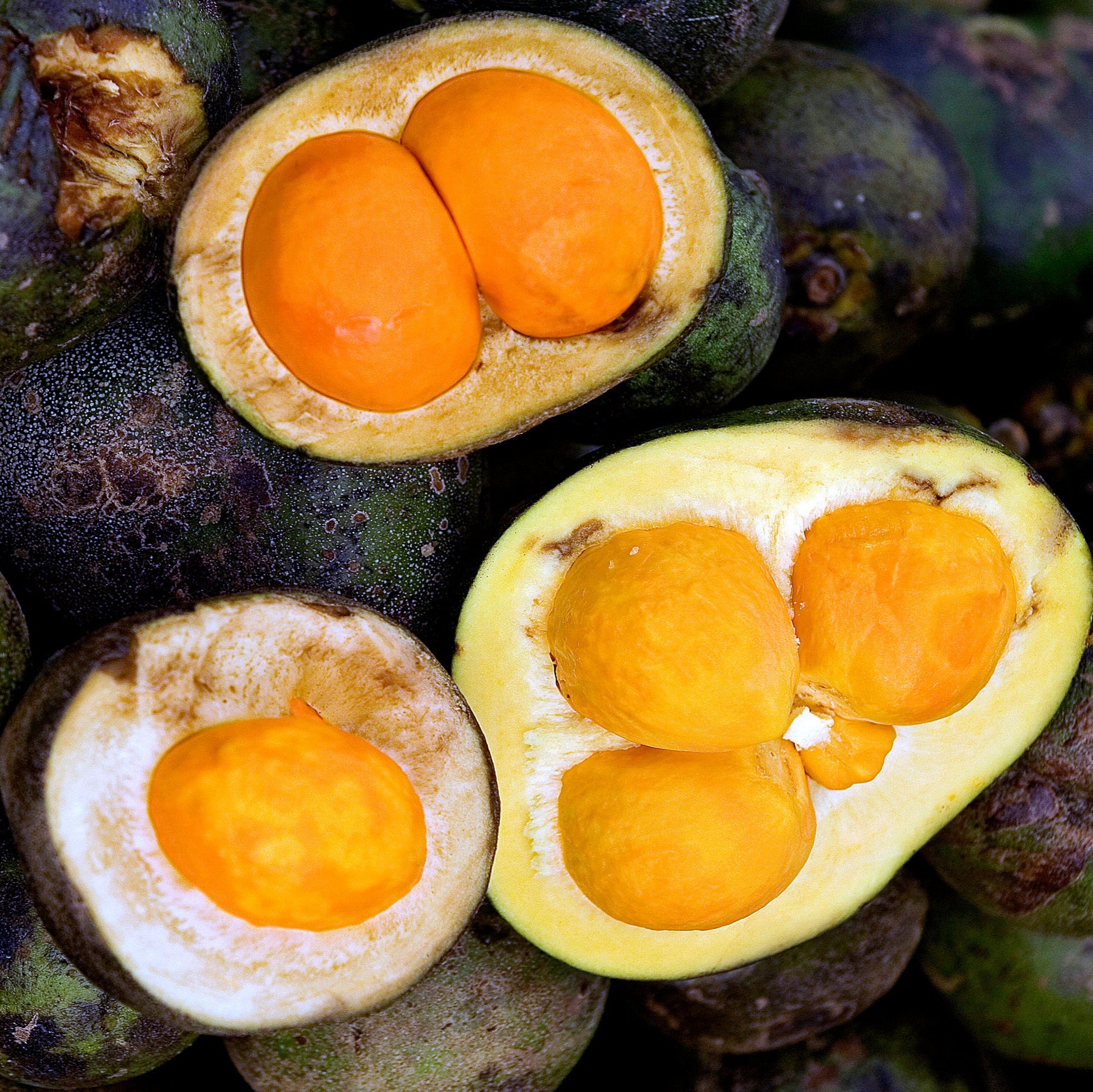Pequi is a spiny, tropical fruit native to Brazil, especially the Cerrado region, with a strong, unique flavor often described as a mix of citrus, pineapple, and hazelnut. The bright yellow pulp surrounding a large, hard-shelled seed is edible after cooking and is used to flavor dishes like chicken and rice, while the fruit's oil is used in cosmetics and food products. Due to its sharp, spiny rind, the fruit is considered "dangerous" and requires careful preparation to avoid ingesting the thorns