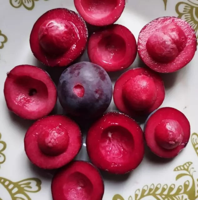 The fruit of the Purple Plum Cherry is a visual delight—richly purple in color, rounded, and adorned with a smooth skin that envelops a fuzzy central seed. Surrounding this seed is a generous portion of juicy, luscious flesh that carries a distinctive sweet-acid balance. It is this refreshing interplay of tart and sweet that makes the fruit a prized treat, whether consumed fresh or turned into preserves.