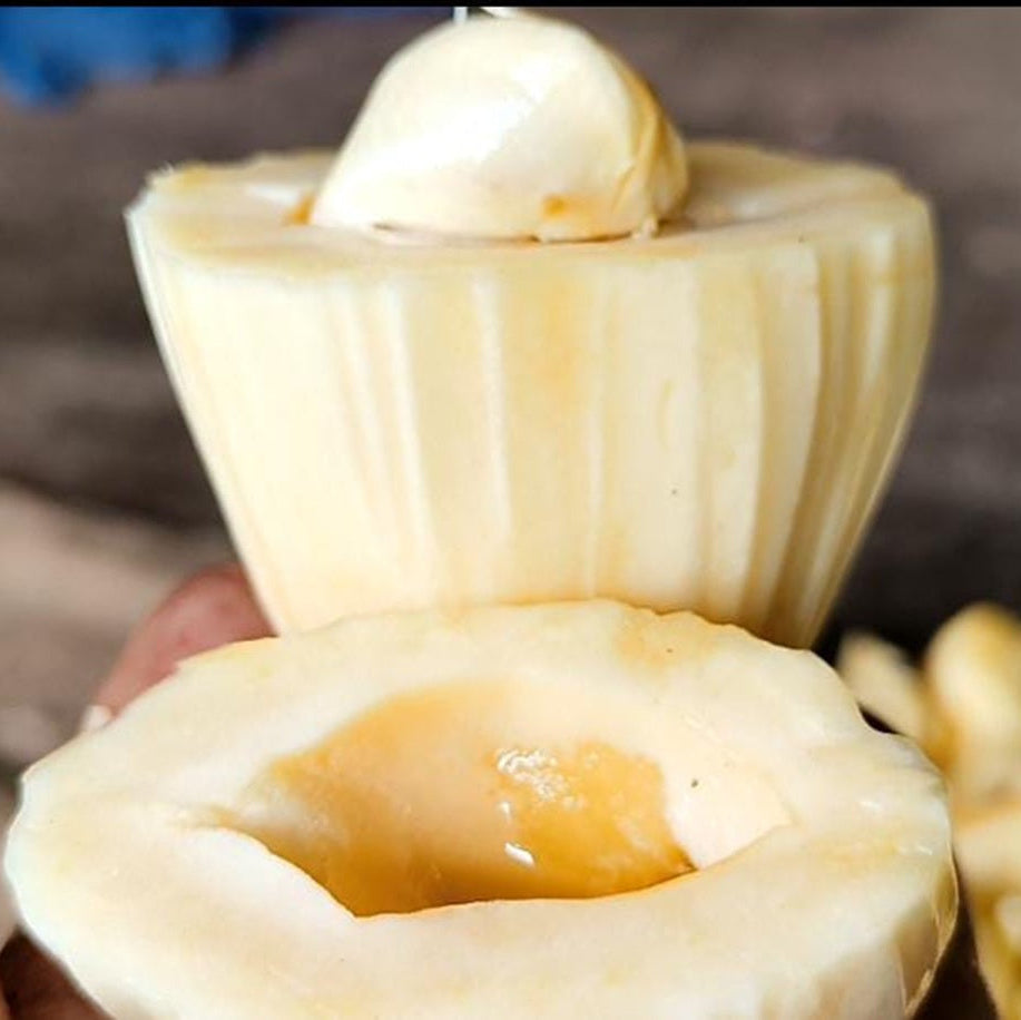 The 'Sugar Jack' ( Artocarpus heterophyllus) is a celebrated jackfruit cultivar, natively grown in Taiwan, distinguished by its exceptional sweetness. It is specifically recognized as one of the sweetest jackfruits originating from Taiwan. This premium fruit is characterized by its thick, very juicy arils (flesh) and an extraordinarily high sugar content, typically measuring between 25 to 30 Brix. Gardeners and cultivators value the Sugar Jack tree for its relatively fast production, as it begins fruiting within 3 to 4 years from planting.