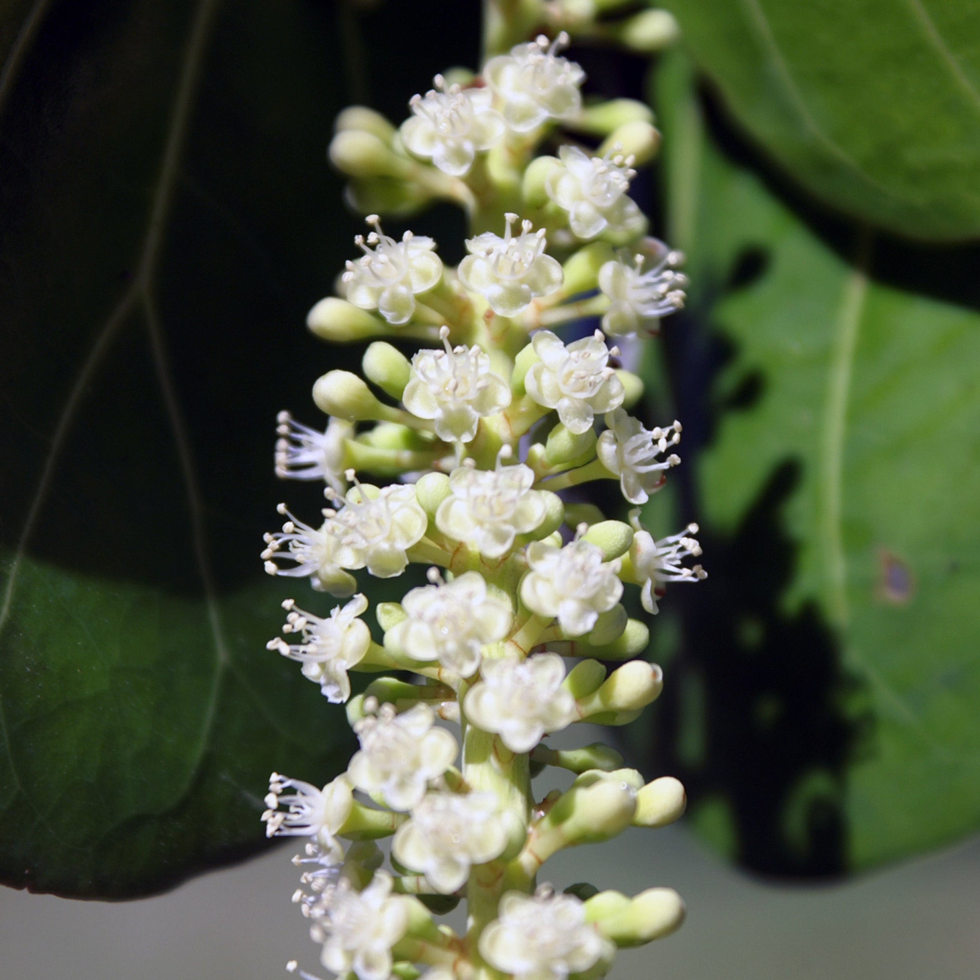 The White Seagrape (Coccoloba spinescens) is a striking relative of the common Sea Grape, best known for its long, cascading clusters of small, fleshy fruits that ripen to a brilliant, bright white. Native to the arid deserts and grasslands of Paraguay, this shrub remains very compact and grows low to the ground, making it an excellent choice for smaller landscapes or rock gardens. Interestingly, despite the "spinescens" in its name, the plant is actually entirely spine-free. It is an exceptionally tough and drought-resistant specimen, showing surprising resilience with a cold hardiness that may extend down into the low 20s°F. Beyond its rugged nature, the fruits are a delightful harvest, offering a unique sweet-tart candy flavor that makes them incredibly pleasant to eat.